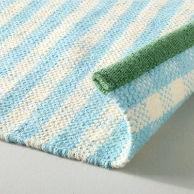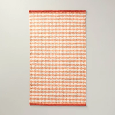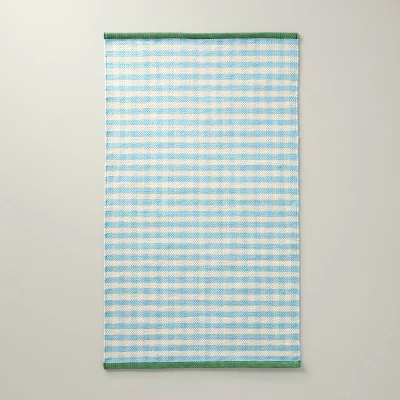 Add timeless style to your flooring with this 30″ x 50″ Gingham Check Indoor/Outdoor Handmade Area Rug from Hearth & Hand™ with Magnolia. The handmade accent rug is adorned with a lovely plaid pattern, adding flair to any space in your home, and the flat pile height allows for versatile placement. Use it to highlight specific areas, such as in front of a reading chair or small desk, or keep it outside your front door for a welcoming touch.