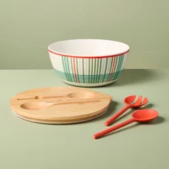 4pc Summer Plaid Melamine Serving Bowl And Utensil Set – Hearth & Hand™ With Magnolia